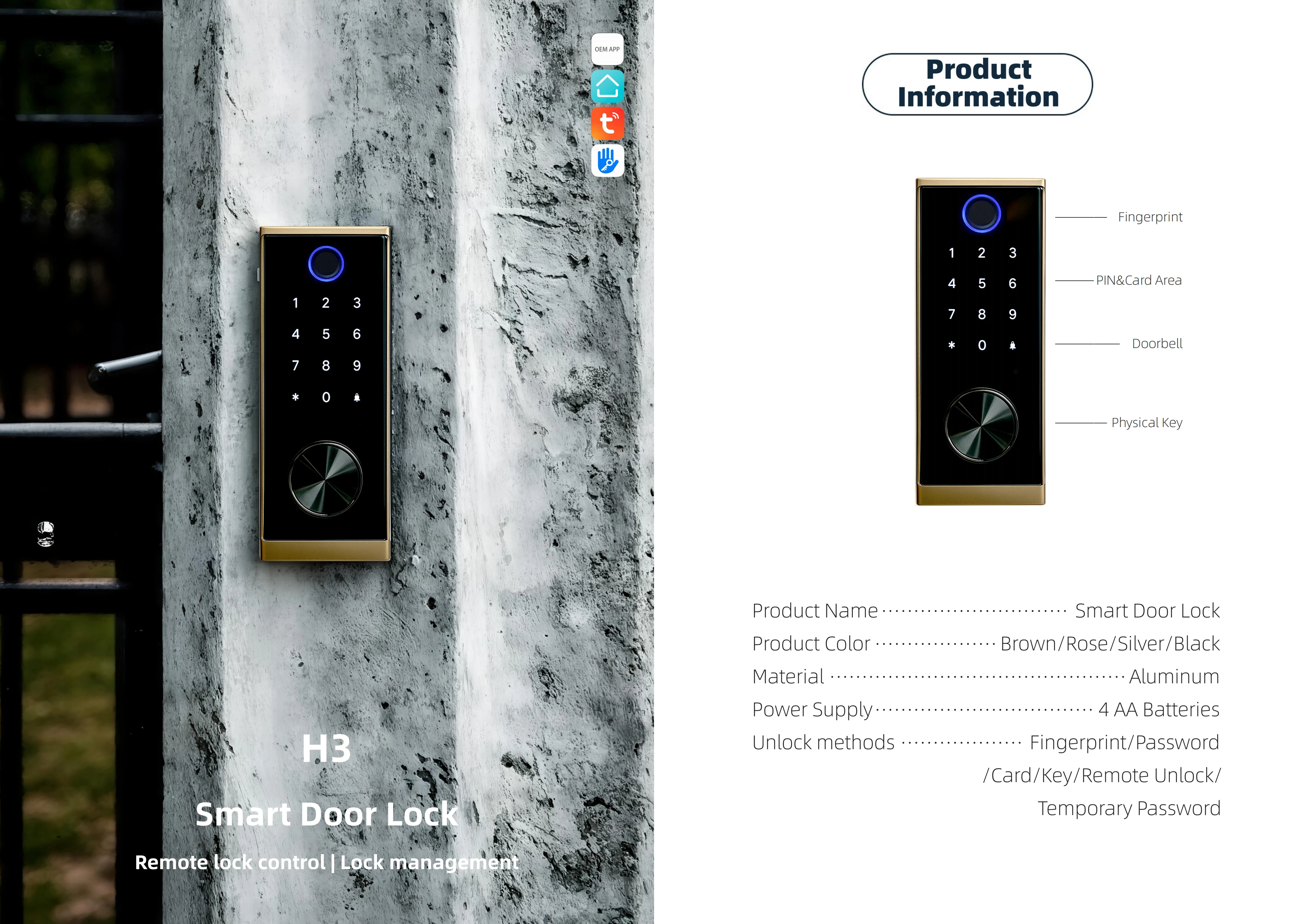 Easily unlock doors remotely, manage users and fingerprints, send temporary passcodes, and view real-time access logs — all from a single, intuitive interface. Whether you’re at home, at work, or abroad, stay connected and secure with just a tap.
